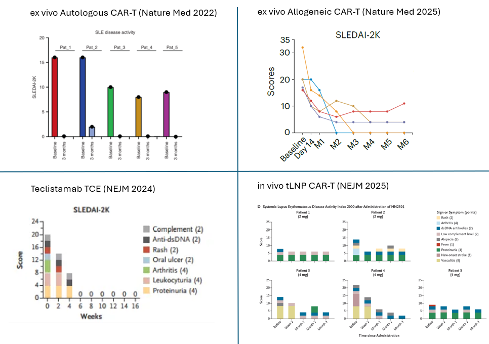 While ex vivo CAR-T continues to show the most robust and consistent clinical effect, the in vivo tLNP approach is rapidly closing the gap.